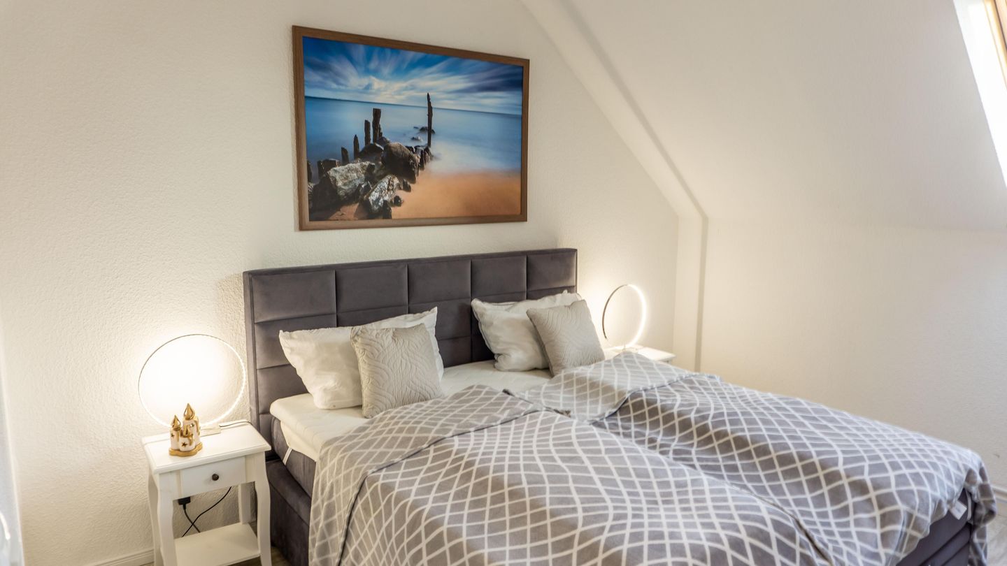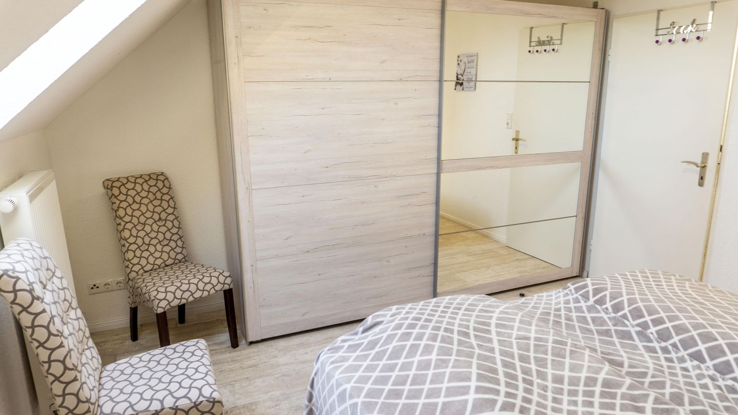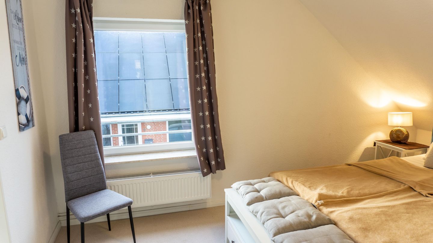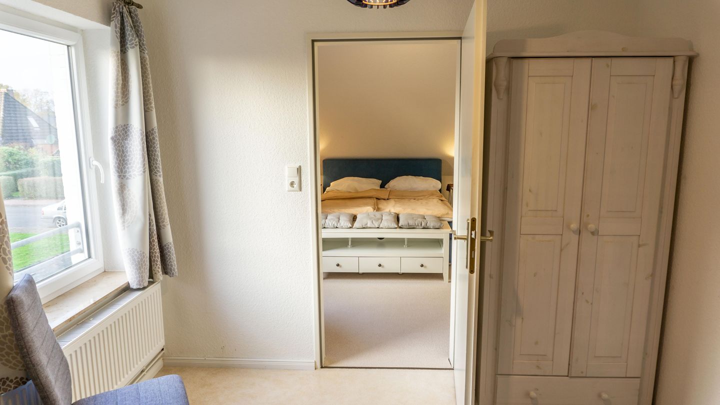 Die Ferienwohnung verfügt über insgesamt vier Zimmer, darunter drei separate Schlafzimmer , die für angenehme Wohnatmosphäre sorgen. Das Einzelbettzimmer ist nur über ein anderes Schlafzimmer zugänglich mit dem Doppelbett 160er Breite. Das 3. Schlafzimmer beherbergt ein großes Doppelbett mit 180er Breite.
