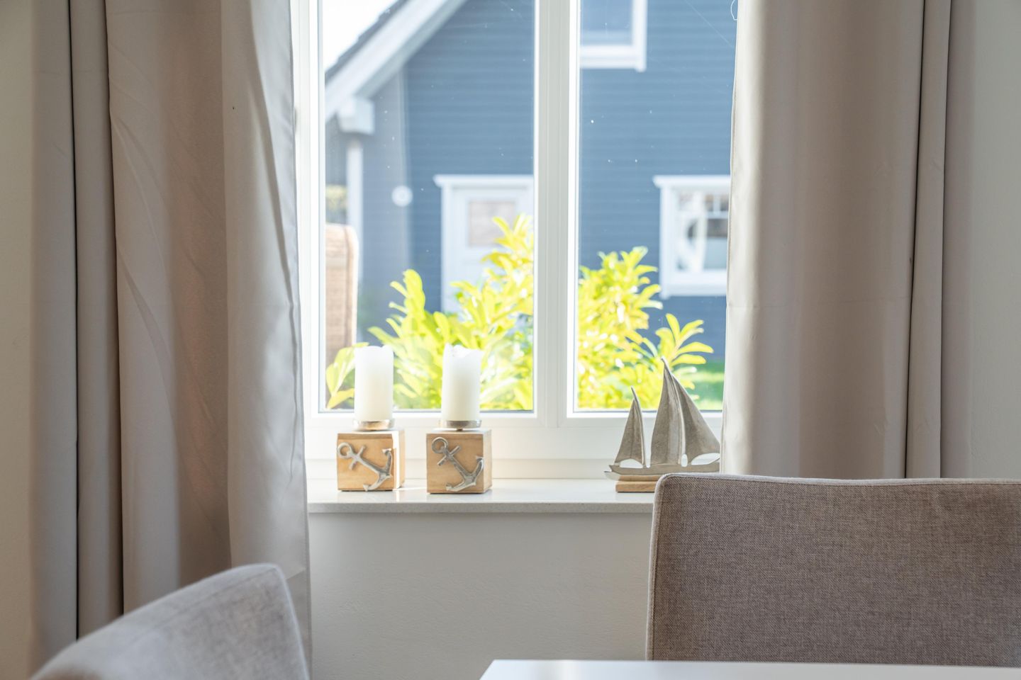 Der offene Wohn- und Essbereich im Erdgeschoss lädt mit einem gemütlichen Kamin, einer Sofaecke und großem Esstisch zu geselligen Abenden ein. Die voll ausgestattete Küche verfügt über Ceranherd, Backofen, Spülmaschine und eine umfassende Küchenausstattung, sodass Selbstversorger bestens ausgestattet sind. Fußbodenheizung in allen Räumen, kostenfreies WLAN, Digital-TV und eine HiFi-Anlage runden den Wohnkomfort ab. Waschmaschine, Trockner, Bügeleisen und Bügelbrett stehen ebenfalls zur Verfügung, was das Ferienhaus ideal auch für längere Aufenthalte macht.