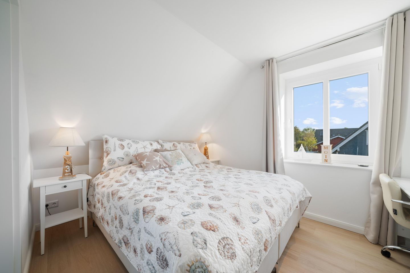 Das Erdgeschoss öffnet sich zur überdachten Terrasse mit Grill. Im weitläufigen Garten mit Liegewiese, Gartenmöbeln und eigenem Strandkorb genießen Sie entspannte Stunden an der frischen Nordseeluft. Auch ein Balkon mit Blick ins Grüne sorgt für erholsame Momente. Für Autos steht ein privater, kostenfreier Parkplatz direkt am Haus bereit.