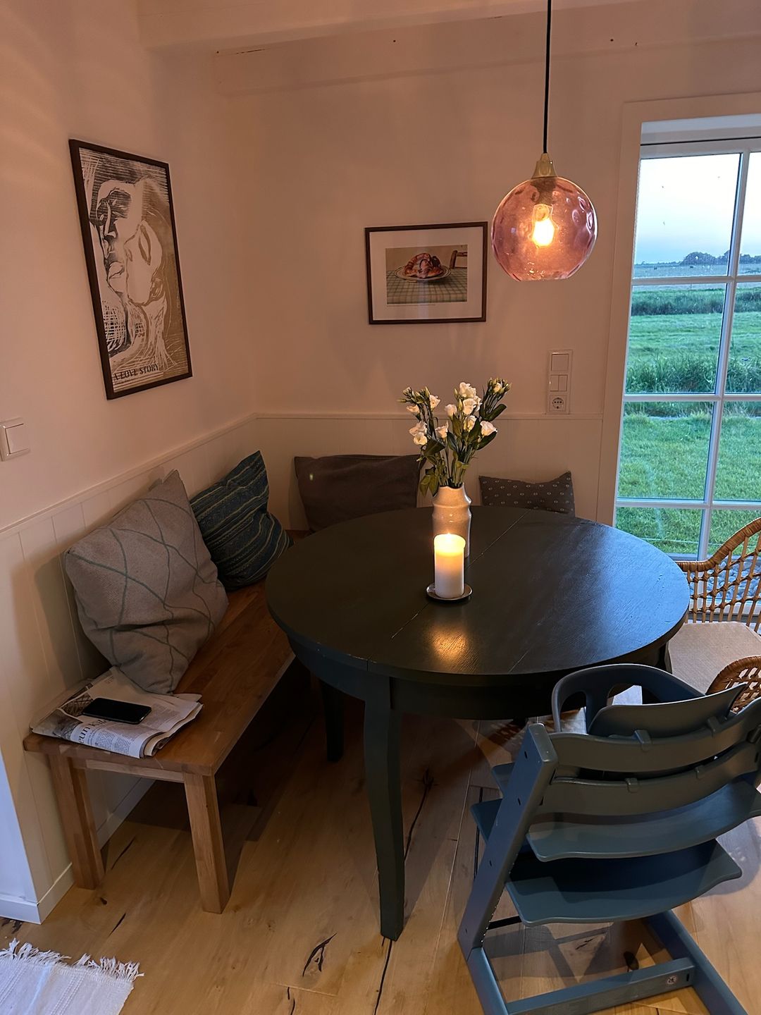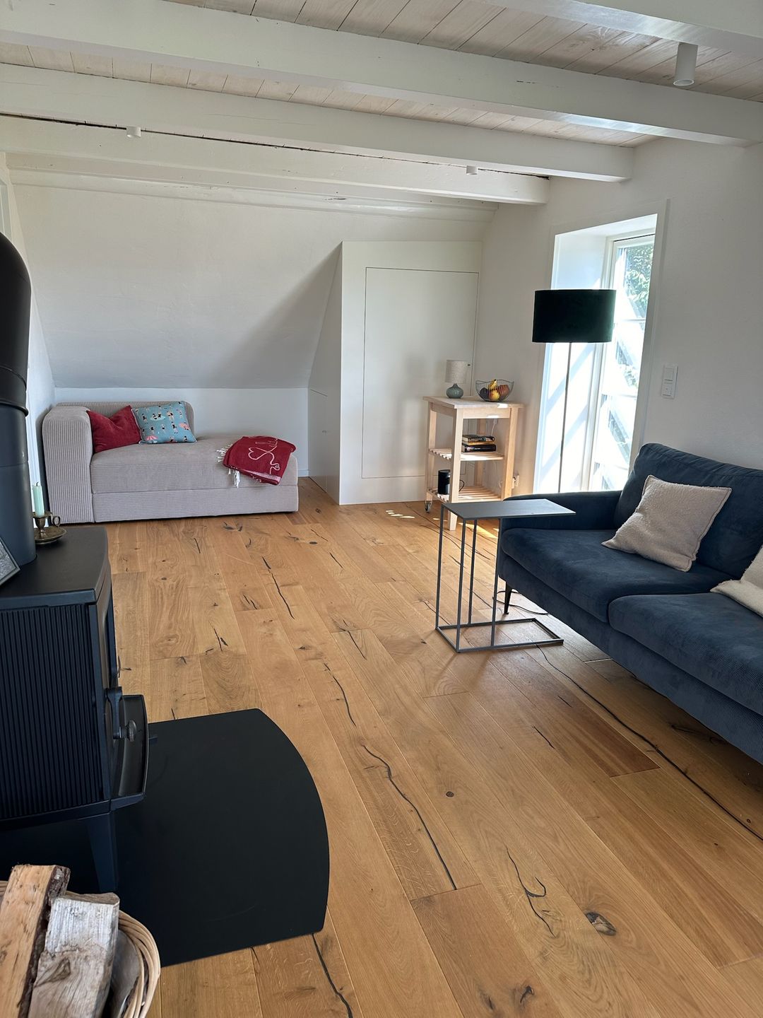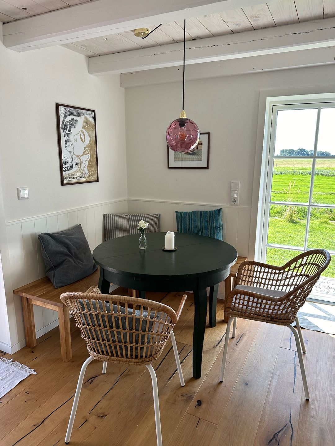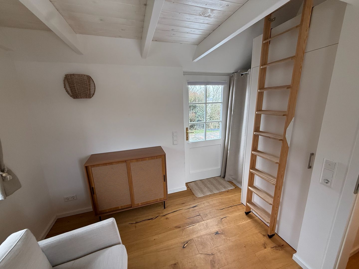 Im Wohnbereich erwartet Sie eine Sofaecke mit Sofa und Sessel sowie ein Essbereich mit Esstisch. Für behagliche Stunden steht ein Kamin-/Ofen bereit. Die Heizung erfolgt über eine Wärmepumpe mit angenehmer Fußbodenheizung. WLAN/Internet ist verfügbar, ebenso Bücher und Spiele. Zur Ausstattung gehören außerdem Garderobe, Kommode, Schuhschrank, Fliegengitter, Staubsauger sowie Rauchmelder/Feuermelder und ein Feuerlöscher. In dieser Unterkunft gibt es keinen Fernseher. Die ländliche Idylle und das Miteinander stehen hier im Fokus. Die Seele baumeln lassen fällt hier besonders leicht.