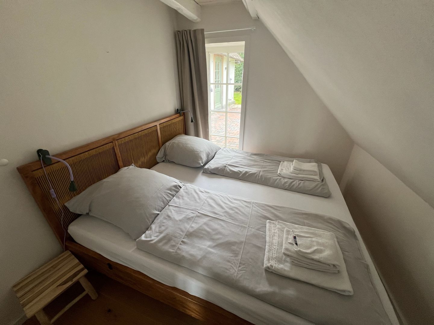 Das Haus verfügt über insgesamt 3 Zimmer (zusätzlich 1 im Nebengebäude), darunter 3 Schlafzimmer (1 im Nebengebäude) , 1 Badezimmer sowie ein zusätzliches Gäste-WC im Nebengebäude. Im Badezimmer finden Sie eine bodengleiche Dusche, WC, Waschbecken, Spiegel und einen Haartrockner.