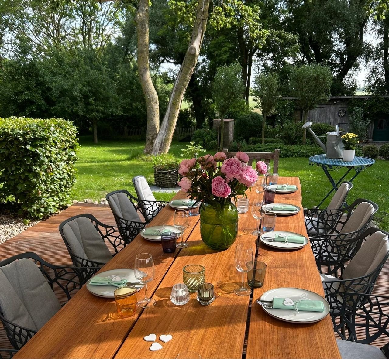 Der großzügige Außenbereich mit Außensauna auf einem 3900 m² großen Grundstück lässt keine Wünsche offen. Zwei Sonnenterrassen, ausgestattet mit bequemen Sonnenliegen und einem traditionellen Strandkorb, laden zum Sonnenbaden und Entspannen ein. Der weitläufige Garten bietet außerdem Platz für Aktivitäten wie Tischtennis oder Spielen mit den Kindern. Für Hundebesitzer gibt es viel Raum, um den Vierbeiner toben zu lassen.