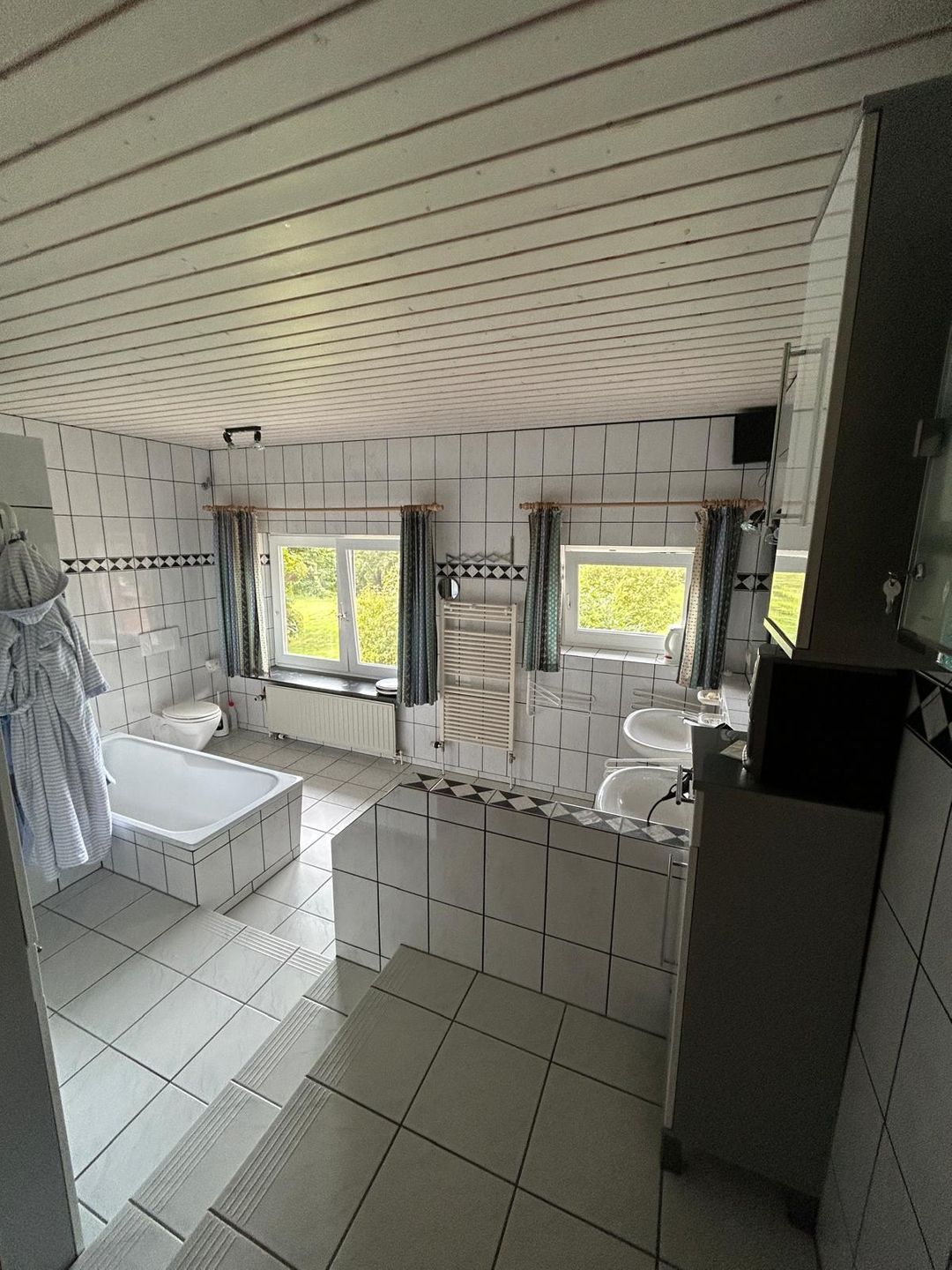 Im Außenbereich lädt die überdachte Terrasse mit Markise und Gartenmöbeln zu entspannten Stunden im Freien ein; ein eigener Strandkorb bietet zusätzlichen Komfort. Der weitläufige und gepflegte Garten mit Landschaftsblick ist ideal für Erholung und zum Spielen für Kinder. Das große Grundstück garantiert Privatsphäre. Für Grillabende oder ein Sonnenbad ist reichlich Platz vorhanden.