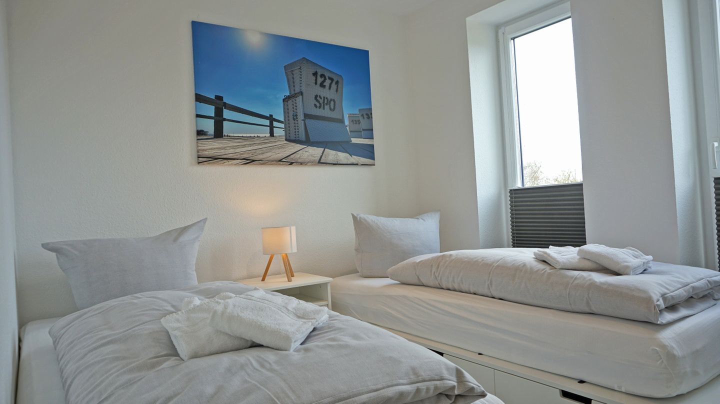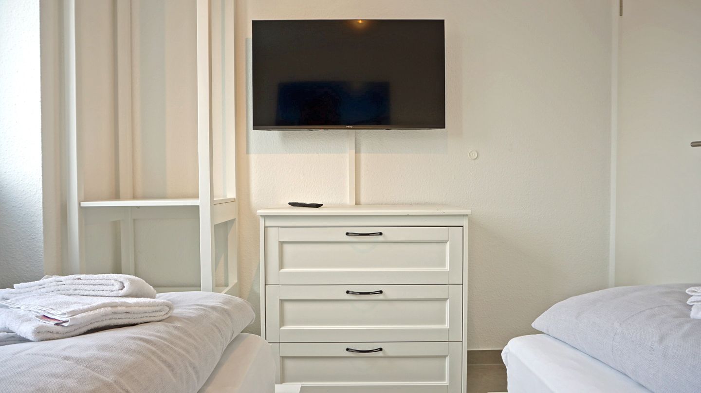 Schlafzimmer 4 mit 2 Einzelbetten, Fernseher