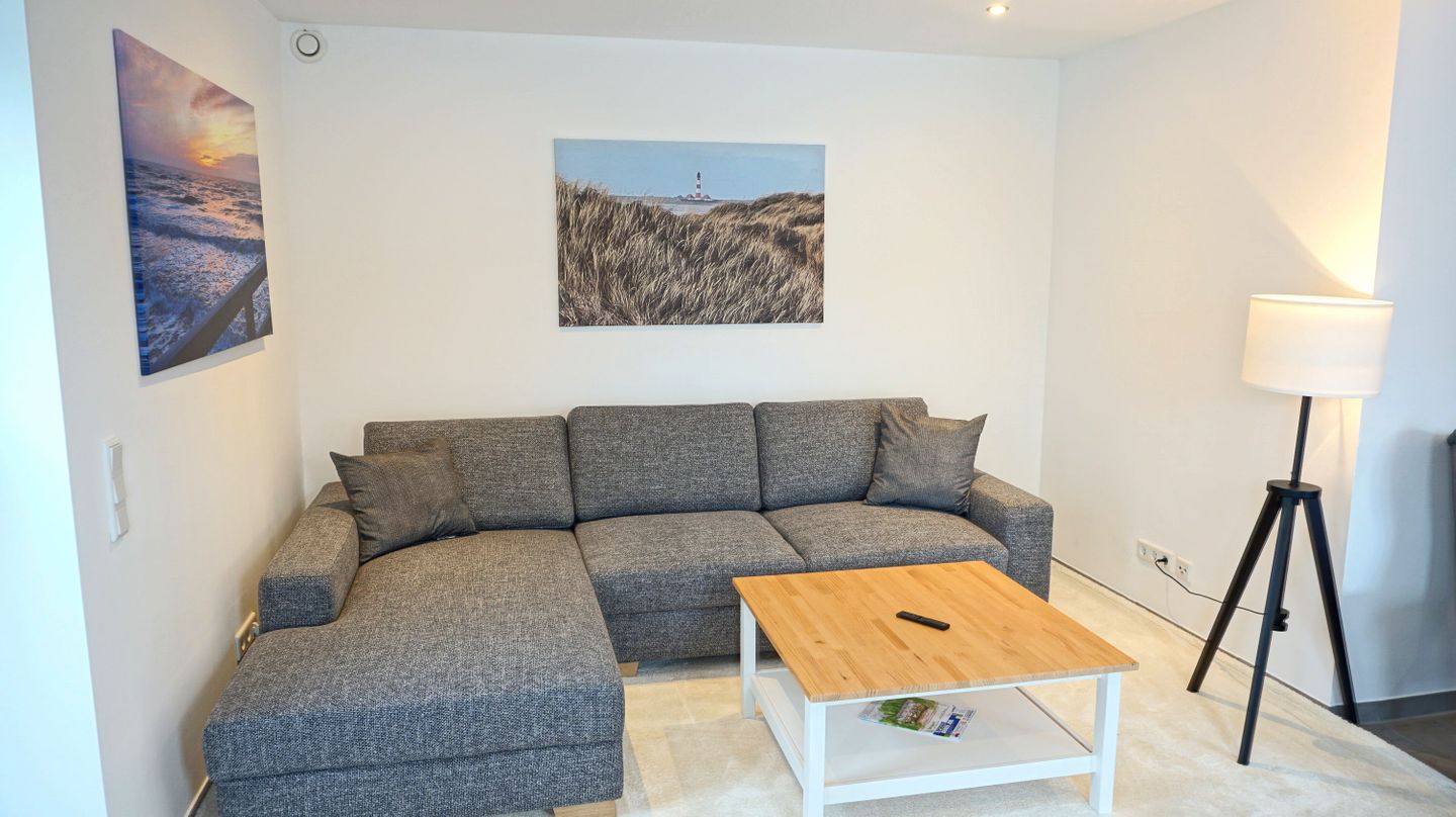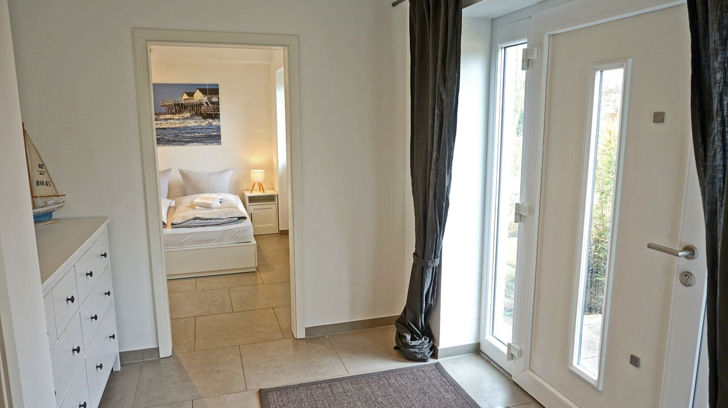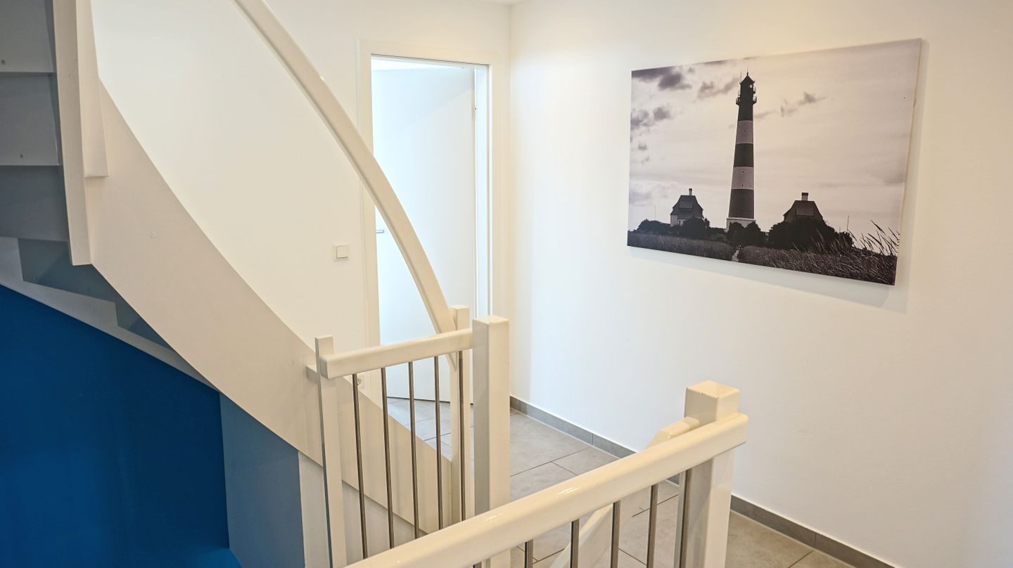 Das Haus erstreckt sich über 3 Etagen und wurde zuletzt 2026 renoviert. Im Wohnbereich schaffen Fliesenböden, eine Sofaecke mit Sofa (Schlafsofafunktion) und Sesseln sowie ein separater Essbereich mit Esstisch eine funktionale und angenehme Wohnatmosphäre. Eine Garderobe und praktische Stauraummöglichkeiten, unter anderem durch eine Kommode, finden sich im Eingangsbereich. Sichtschutz an allen Fenstern sorgt für zusätzlichen Komfort und Privatsphäre. Als Nicht-Raucher-Unterkunft und mit allergikergeeigneter Ausstattung bietet das Sonnenhaus gute Voraussetzungen für einen unbeschwerten Aufenthalt.