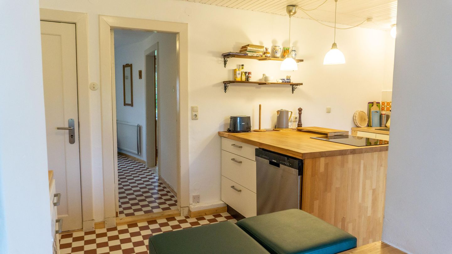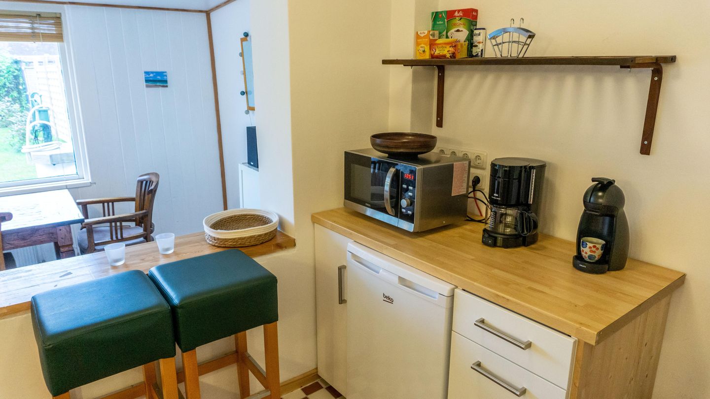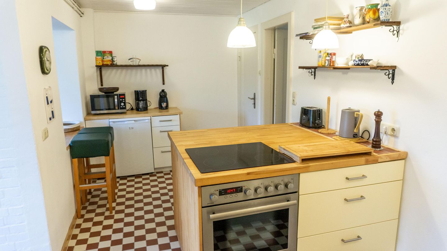 Die geschlossene Küche mit Essbereich ist komplett ausgestattet – Ceranherd, Backofen, Kühlschrank (mit Gefrierfach), Mikrowelle, Spülmaschine, Wasserkocher, Mixer, Toaster, Kaffeemaschine, sowie umfangreiche Küchenutensilien stehen zu Ihrer Verfügung. Für das gemeinsame Essen bietet der separate Essbereich ein angenehmes Ambiente.