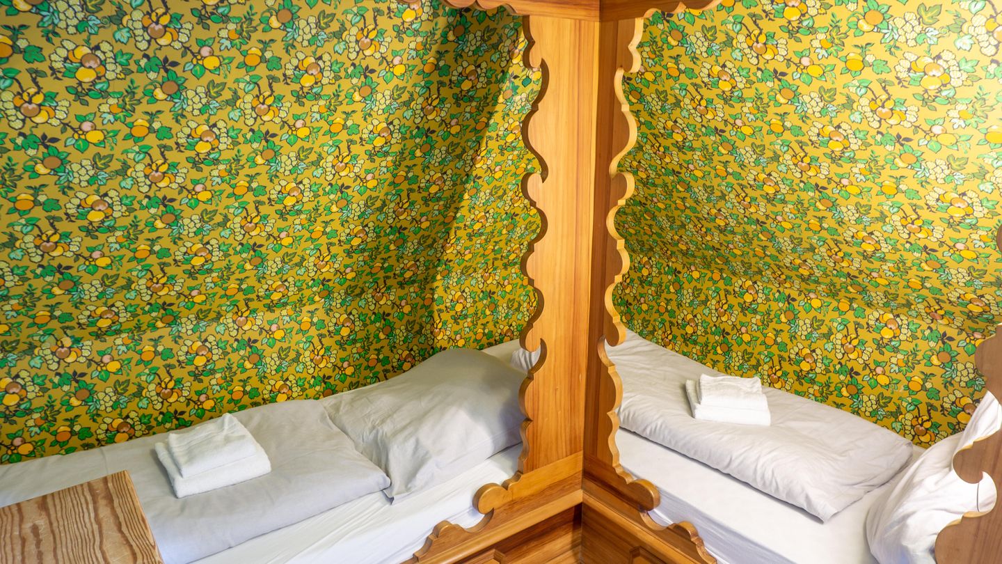 Schlafzimmer mit 2 Alkovenbetten (über Eck, 90 x 200 cm), Kommode