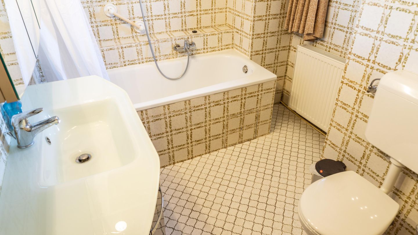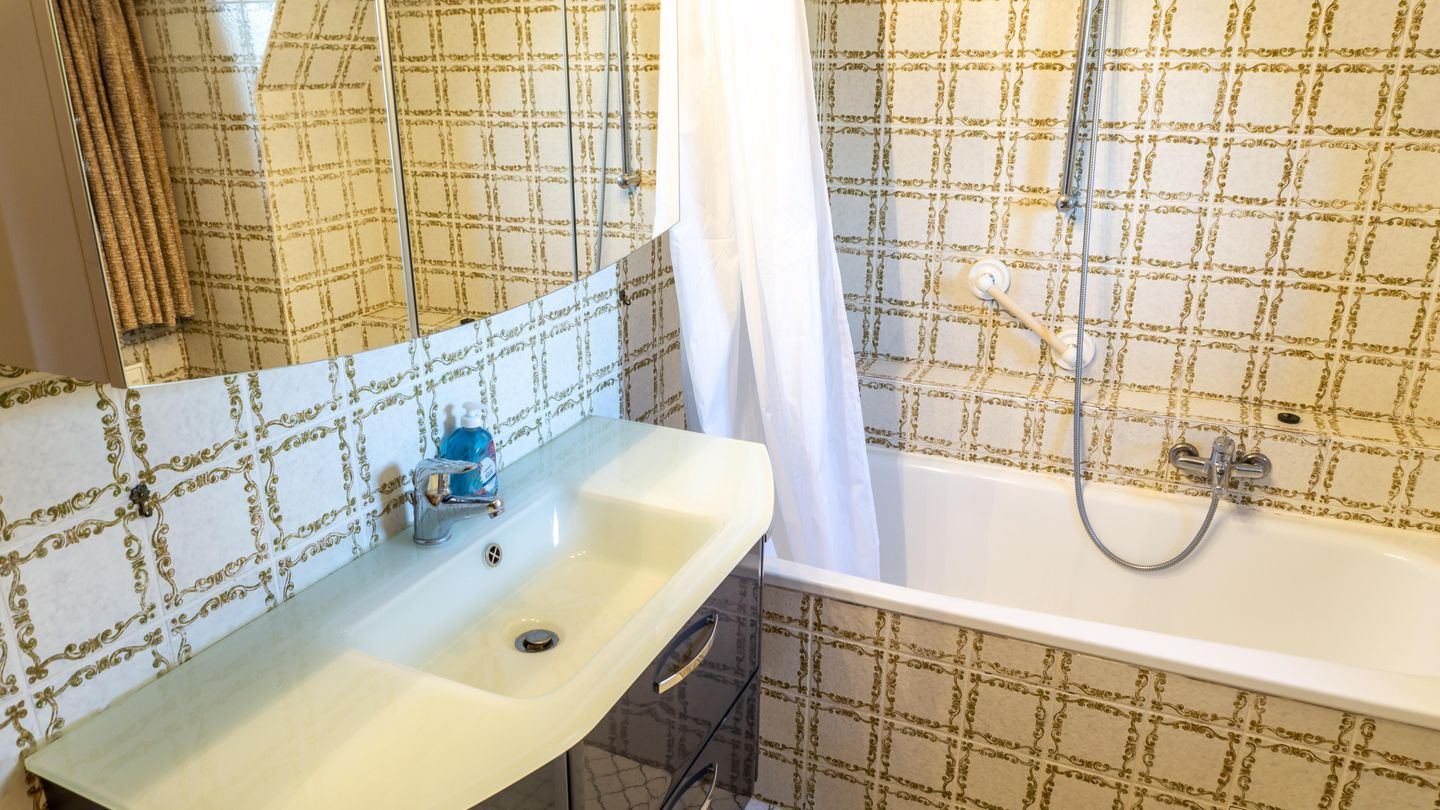 Badezimmer mit Badewanne.